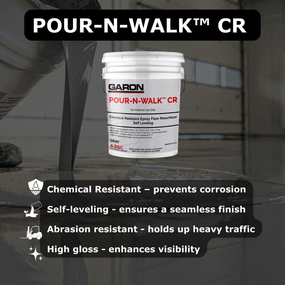 - POUR-N-WALK™ CR: A pourable chemical-resistant epoxy resurfacer that forms a seamless, durable surface over existing concrete